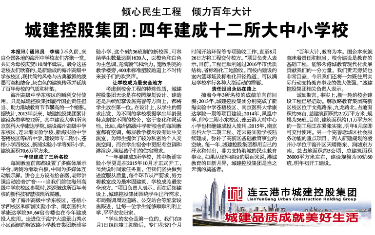城建控股集團(tuán):四年建成十二所大中小學(xué)校