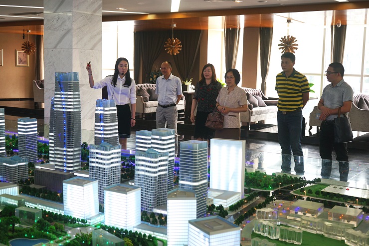 7月14日上午,城建控股副總經(jīng)理周瑞榮攜集團房地產(chǎn)部朱強部長、金海置業(yè)一行對淮安市金融中心項目進行實地考察學(xué)習(xí),淮安市國有聯(lián)合投資發(fā)展集團有限公司黨委副書記、副總經(jīng)理張清明一行給予熱情接待。他們帶領(lǐng)考察人員先后參觀了金融中心展示廳和施工現(xiàn)場,詳細介紹了金融中心的設(shè)計理念、整體規(guī)劃、功能配套、招商工作。項目總用地面積562畝,總建筑面積150萬平方米,集聚于優(yōu)質(zhì)金融機構(gòu)、發(fā)達市場、先進設(shè)施、服務(wù)高效的金融產(chǎn)業(yè)核心區(qū)。