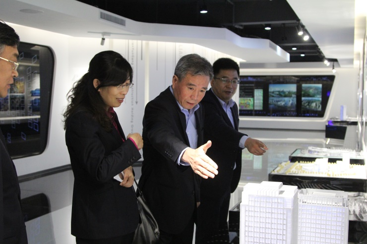 考察組首先來到集團(tuán)14樓城建展示大廳,詳細(xì)詢問了展示大廳的方案設(shè)計、施工建設(shè)和造價預(yù)算等情況。在“互動飛屏”區(qū),考察組觀看集團(tuán)在勞動模范表彰、企業(yè)文化建設(shè)、黨團(tuán)建設(shè)、紀(jì)檢監(jiān)察等方面的具體內(nèi)容,了解了集團(tuán)在企業(yè)文化建設(shè)方面取得的成績;在“電子沙盤”區(qū),考察組觀看了連云新城、新海新區(qū)、鳳凰新城和孔望山新城的規(guī)劃宣傳片,領(lǐng)略集團(tuán)在土地一級開發(fā)、四座新城的片區(qū)開發(fā)、棚改及保障性住房方面所作出的重大貢獻(xiàn);在“3D影院區(qū)”,考察組觀看故事宣傳篇“港城的一天”。