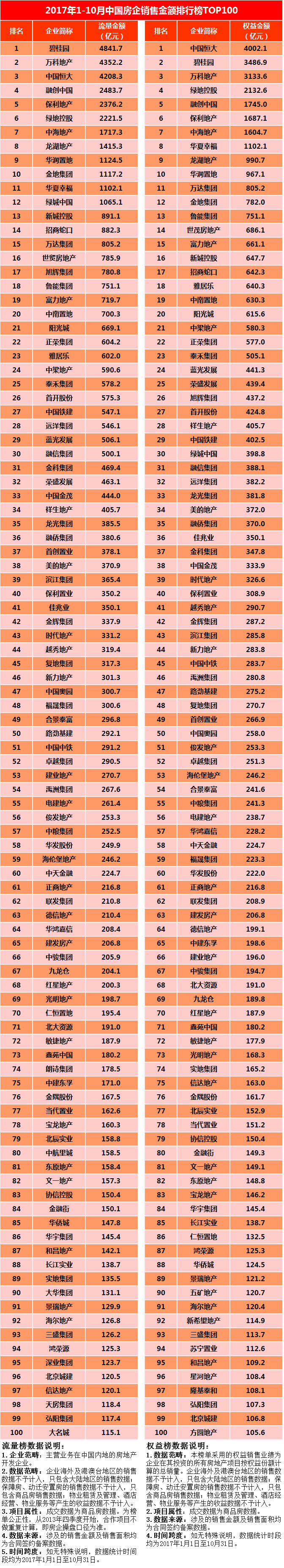 《2017年1-10月中國(guó)房地產(chǎn)企業(yè)銷售TOP100》排行榜發(fā)布