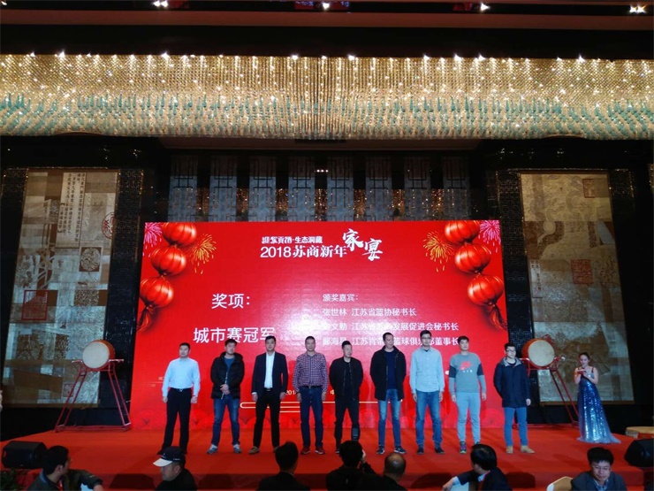 在報(bào)告會的第二部分“2018蘇商新年家宴”環(huán)節(jié)中,江蘇省籃協(xié)向在“2017江蘇企業(yè)籃球邀請賽”中獲獎(jiǎng)的隊(duì)伍頒發(fā)獎(jiǎng)狀和獎(jiǎng)金。城建控股集團(tuán)籃球隊(duì)作為城市分站賽冠軍球隊(duì)?wèi)?yīng)邀上臺領(lǐng)獎(jiǎng)。據(jù)悉,“2017江蘇企業(yè)籃球邀請賽”為江蘇省蘇商發(fā)展促進(jìn)會、江蘇省籃球運(yùn)動(dòng)協(xié)會聯(lián)合推出的全省最高規(guī)格的企業(yè)籃球聯(lián)賽,集團(tuán)籃球隊(duì)在籃球邀請賽中表現(xiàn)搶眼,充分展示了城建人拼搏奮進(jìn)的風(fēng)采。