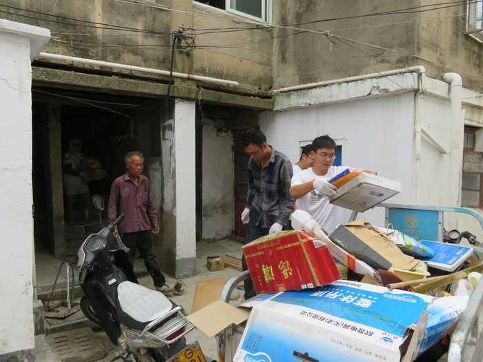 活動(dòng)中,志愿者們頂著酷暑對(duì)延安村小區(qū)道路垃圾、雜草及違規(guī)堆載物進(jìn)行集中清理,并挨家挨戶對(duì)長(zhǎng)期堆放在樓道衛(wèi)生死角的生活垃圾和廢棄雜物進(jìn)行搬清。正值夏季高溫,樓道內(nèi)的生活廢棄物因長(zhǎng)期堆壓捂悶發(fā)生霉變,不時(shí)傳出刺鼻異味。志愿者們不怕苦、不嫌臟,與社區(qū)工人一起經(jīng)過(guò)3個(gè)小時(shí)奮戰(zhàn),完成了3條小區(qū)道路、7個(gè)樓棟單元的清理任務(wù),42戶小區(qū)居民的衛(wèi)生環(huán)境得到明顯改善。