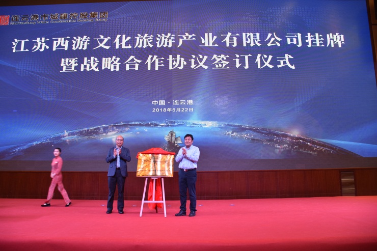 5月22日,江蘇西游文化旅游產(chǎn)業(yè)有限公司掛牌暨戰(zhàn)略合作協(xié)議簽約儀式在花果山大酒店舉行。市領(lǐng)導(dǎo)華本太、市政府副秘書長王友君、市旅游局局長王芬、市國資委主任徐丙超、市城建控股集團(tuán)董事長周文軍;各縣區(qū)、市各相關(guān)部門的分管領(lǐng)導(dǎo);市城建控股集團(tuán)領(lǐng)導(dǎo)班子及中層正職;中視金橋、北京奧威、清華大學(xué)、南京中旅、西游記文化研究會(huì)等參加掛牌儀式。戚文忠副總經(jīng)理主持掛牌儀式。