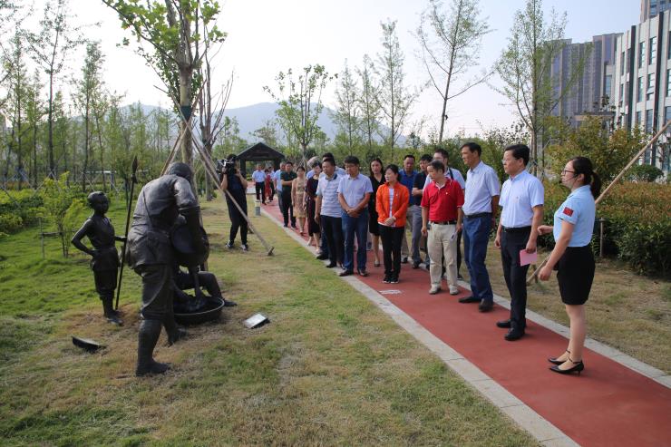 王部長(zhǎng)一行參觀了薪火園、征程園、為民園、學(xué)習(xí)園和宣誓園五個(gè)主題園區(qū)。參觀過(guò)程中,不時(shí)駐足觀看各個(gè)主題園的圖文展板和主題雕塑,瀏覽各類藝術(shù)景觀所展示的黨建文化、黨的光輝歷程及連云港地方黨史等內(nèi)容。王部長(zhǎng)還帶領(lǐng)大家在宣誓園舉行了宣誓儀式,重溫入黨誓詞,在黨旗下接受心靈洗禮,牢記共產(chǎn)黨人的政治責(zé)任和歷史使命。