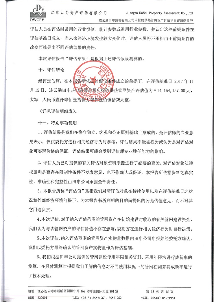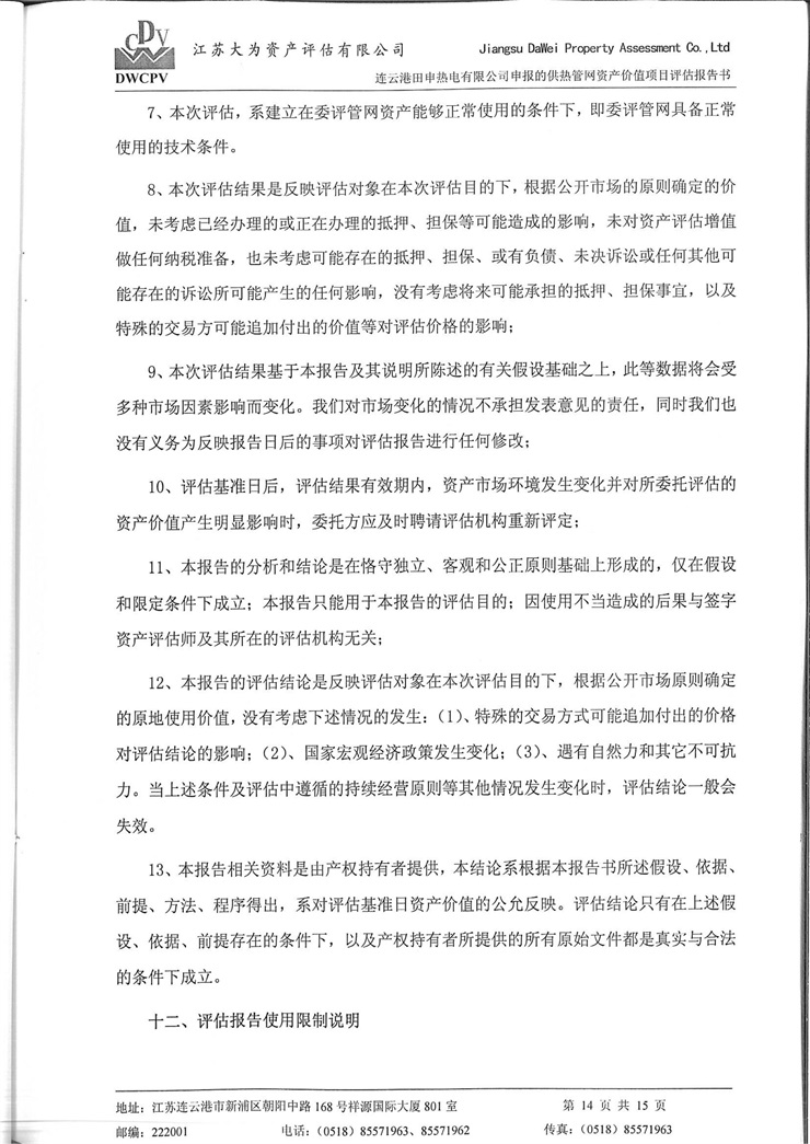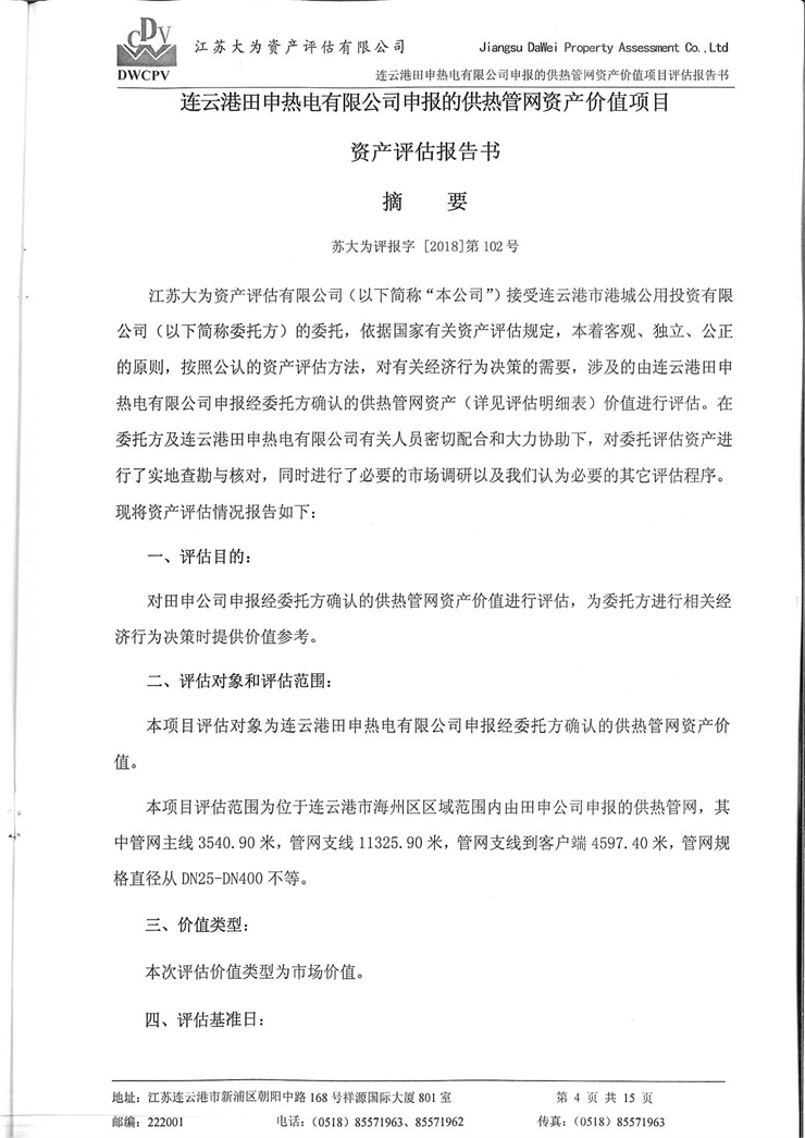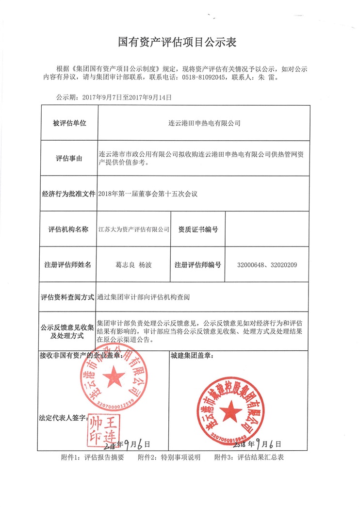 連云港市市政公用有限公司擬收購(gòu)連云港田申熱電有限公司供熱管網(wǎng)資產(chǎn)評(píng)估報(bào)告公示