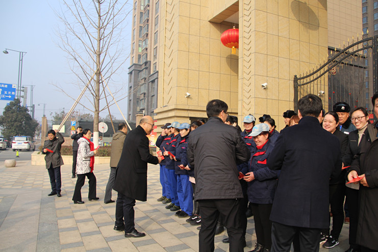 農(nóng)歷己亥豬年大年初一,在這萬家團(tuán)圓、歡度新春佳節(jié)之時,城建控股集團(tuán)董事長周文軍率集團(tuán)領(lǐng)導(dǎo)一行,深入基層一線,先后慰問了茗泰花園、蒼梧新華苑、花果山酒店、連云港大劇院、市政公用供熱部及公共自行車服務(wù)中心等工作人員。每到一處,周文軍董事長對他們一年來的辛勤付出表式感謝,并向春節(jié)期間堅(jiān)守崗位的干部員工致以親切的問候和新春的祝福。