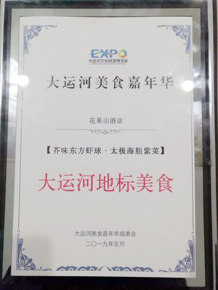 在本次活動中,花果山酒店代表連云港市展示了自主研發(fā)、獨具地域特色的“西游宴”,獲得廣大參展嘉賓和其他參展商的一致好評和認可。同時,本次花果山酒店參展菜肴中的“芥味東方蝦球”、“太極海膽紫菜”榮獲組委會評定的“大運河地標美食”特殊榮譽。
