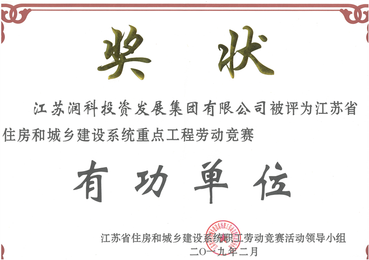 潤(rùn)科集團(tuán)被評(píng)為“江蘇省住房和城鄉(xiāng)建設(shè)系統(tǒng)重點(diǎn)工程勞動(dòng)競(jìng)賽有功單位”