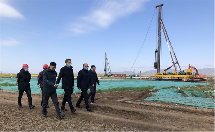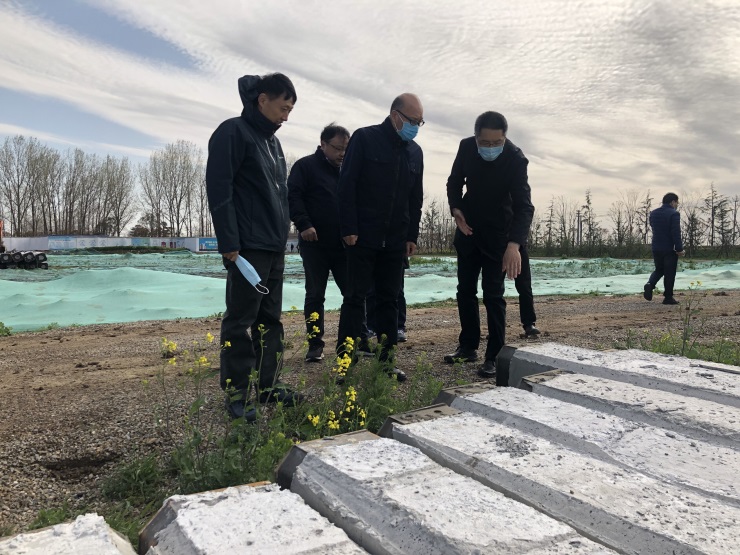 調研中,周文軍董事長一行來到項目施工現場,詳細了解項目建設進展情況,并就項目建設中遇到的難點問題現場研究解決方案。