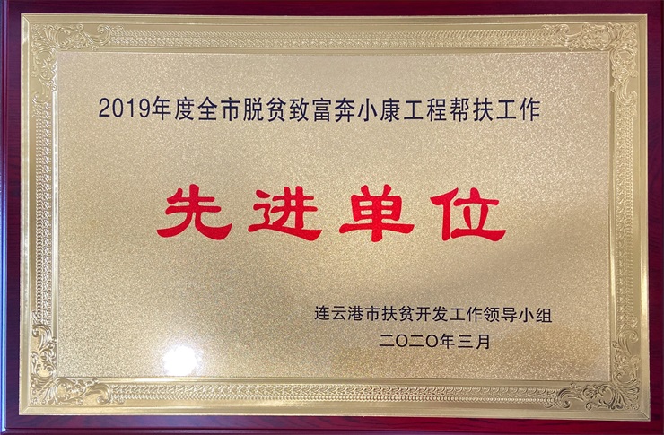 近日,城建控股集團(tuán)收到連云港市扶貧開(kāi)發(fā)工作領(lǐng)導(dǎo)小組授予的“2019年度全市脫貧致富奔小康工程幫扶工作先進(jìn)單位”獎(jiǎng)牌,以表彰集團(tuán)在脫貧致富工作中所做的貢獻(xiàn)。