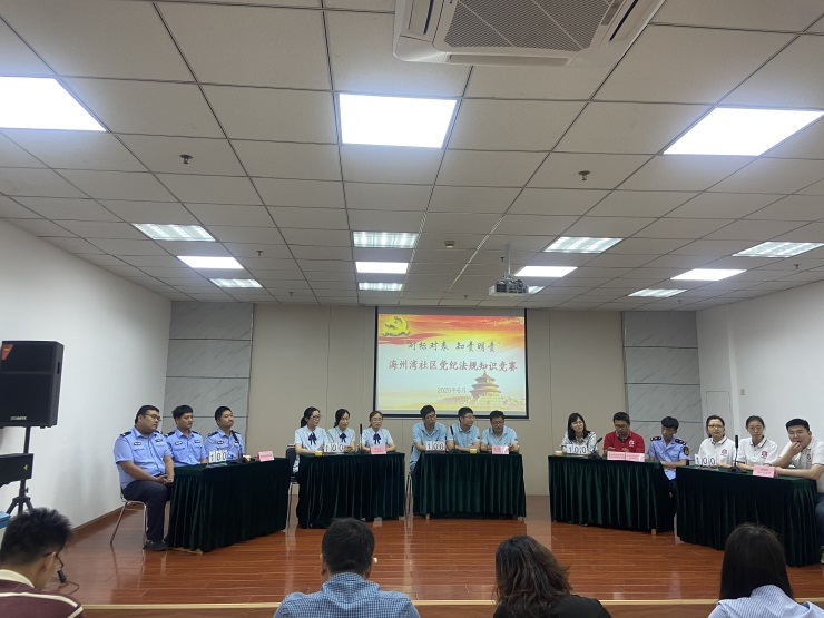 為切實組織好黨員群眾深入學習黨紀法規(guī),教育引導廣大黨員干部學黨紀、知條規(guī)、明底線,6月12日下午,金海岸公司黨支部組織黨員開展“對標對表、知責明責”黨紀法規(guī)知識競賽活動。金海岸公司黨支部、連云區(qū)行政審批局黨支部、市場局海州灣分局黨支部、海州灣社區(qū)黨支部、新城邊防派出所和連云區(qū)海濱旅游度假區(qū)管理辦公室6個黨組織15個黨員代表參加競賽。