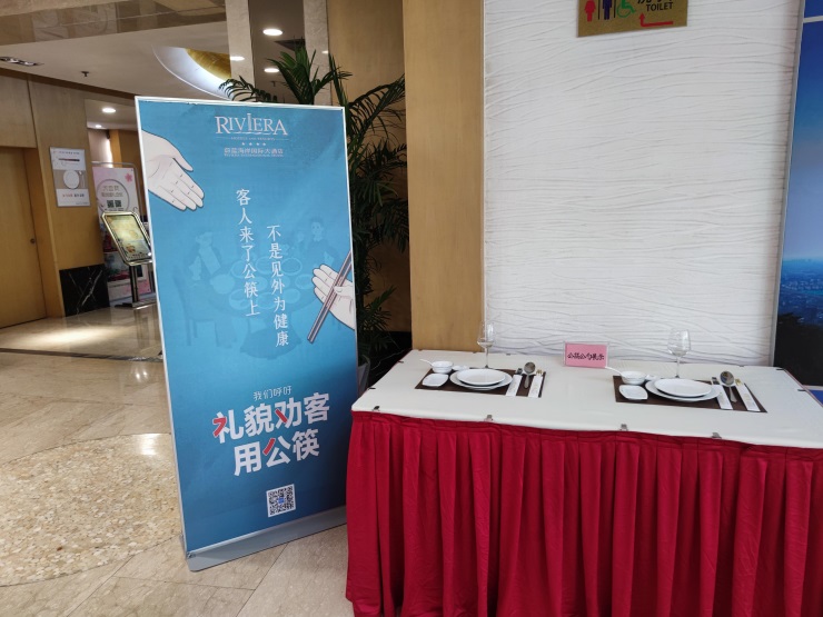 自新冠肺炎疫情爆發(fā)以來(lái),海州灣會(huì)議中心和蔚藍(lán)海岸酒店始終積極響應(yīng)政府部門(mén)號(hào)召,不斷強(qiáng)化疫情防范舉措,在就餐區(qū)域張貼宣傳標(biāo)語(yǔ)、桌牌和墻貼等,嚴(yán)格做好公筷公勺的清洗消毒工作,倡導(dǎo)文明健康用餐方式。同時(shí),組織服務(wù)人員進(jìn)行相關(guān)培訓(xùn),在開(kāi)餐時(shí)介紹并提醒客人注意使用公筷公勺,引導(dǎo)客人文明衛(wèi)生用餐。